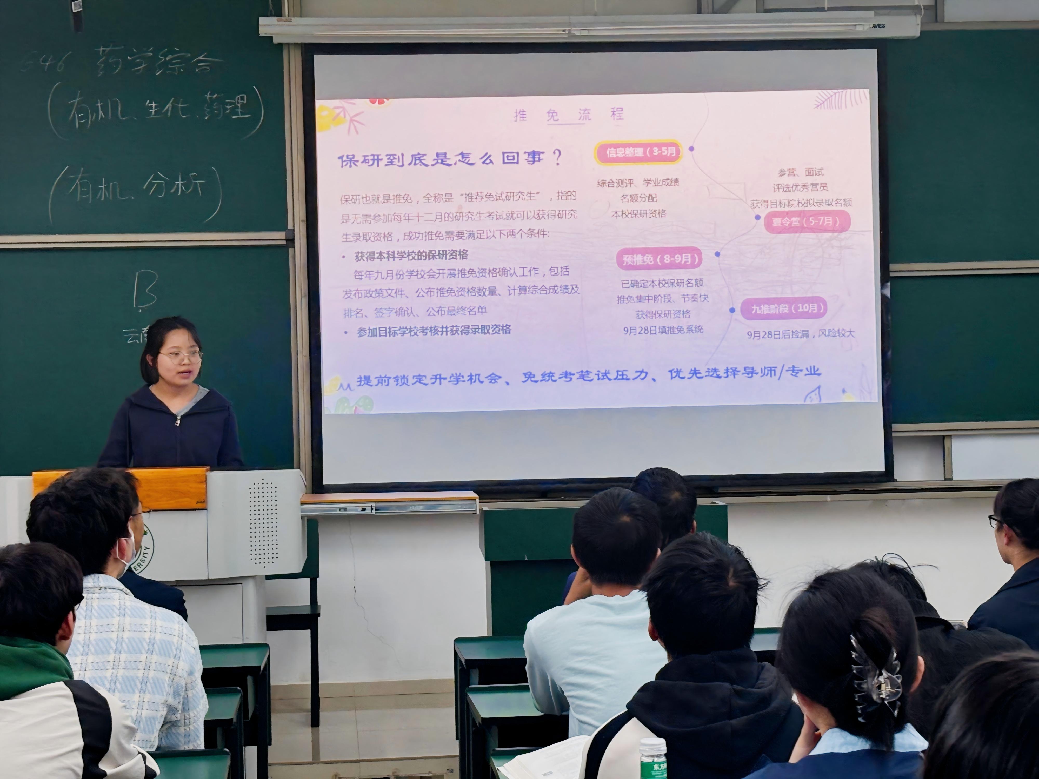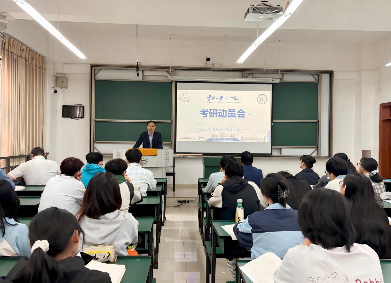 朋辈引航,奋楫前进。为尽早帮助本科生明确考研目标、提前科学规划备考,激发同学升学深造热情,营造积极向上的学风氛围,2025年5月23日下午在格物楼2103室召开全院本科生考研动员交流会。公司党政领导、系主任、教师代表以及研究生代表共同参会。大会由药公司党总支书记李俊杰主持。