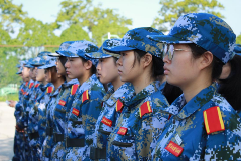 军姿训练完毕后,共同条令教育和队列训练接踵而来。抱腹齐步走、踏步,仔细聆听教官讲解的动作要领,根据教官的指正将步幅、排面做到齐整、标准。她们目视前方,神态端庄,力求每一步都走的铿锵有力,严格到位。