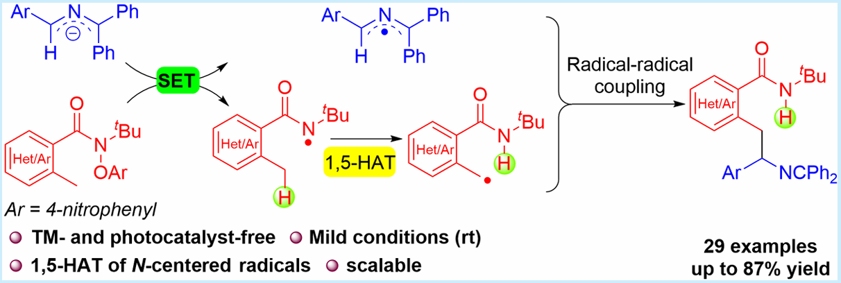 【Org. Lett.】Benzylic C(sp3)–H/C(sp3)–H Coupling with 2-Azaallyl Anions through Single-Electron Transfer and 1,5-Hydrogen Atom Transfer