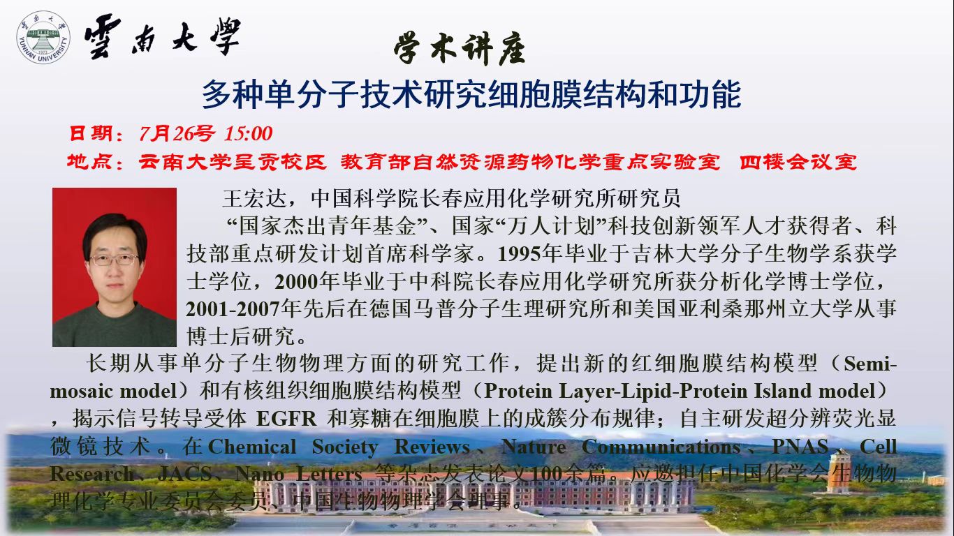 【学术报告】多种单分子技术研究细胞膜结构和功能