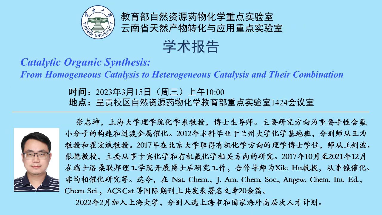 【学术报告】Catalytic Organic Synthesis: From Homogeneous Catalysis to Heterogeneous Catalysis and Their Combination