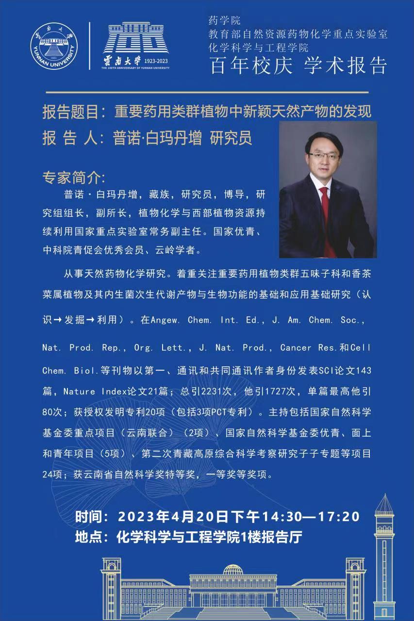 【学术报告】重要药用类群植物中新颖天然产物的发现