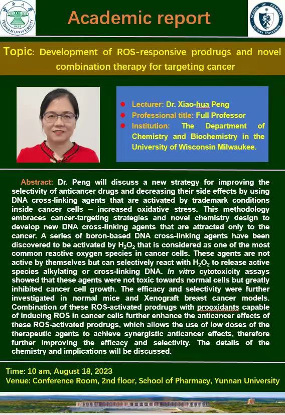 【学术报告】Development of ROS-responsive prodrugs and novel combination therapy for targeting cancer