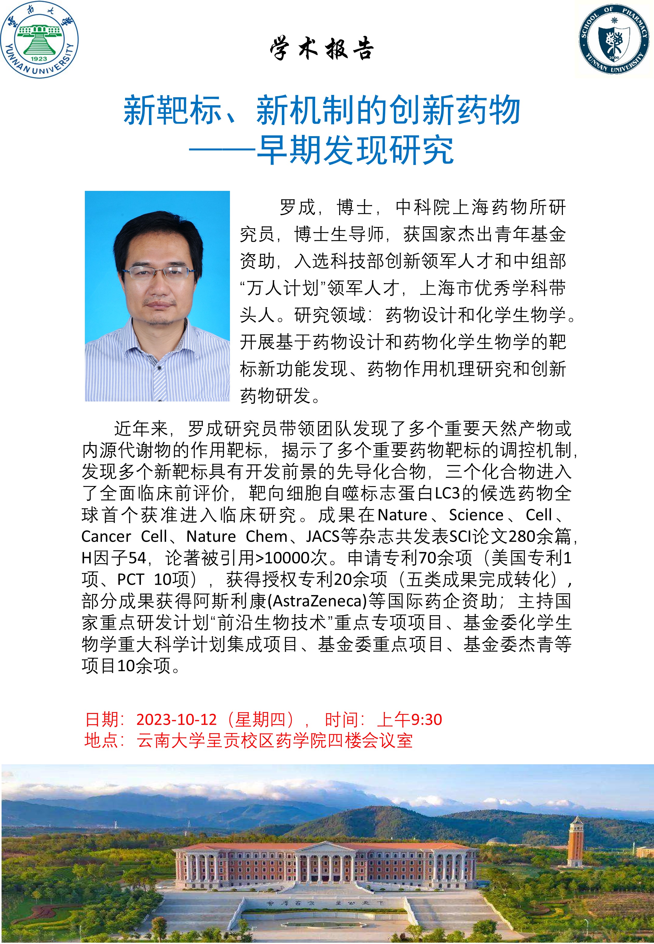 【学术报告】新靶标、新机制的创新药物早期发现研究