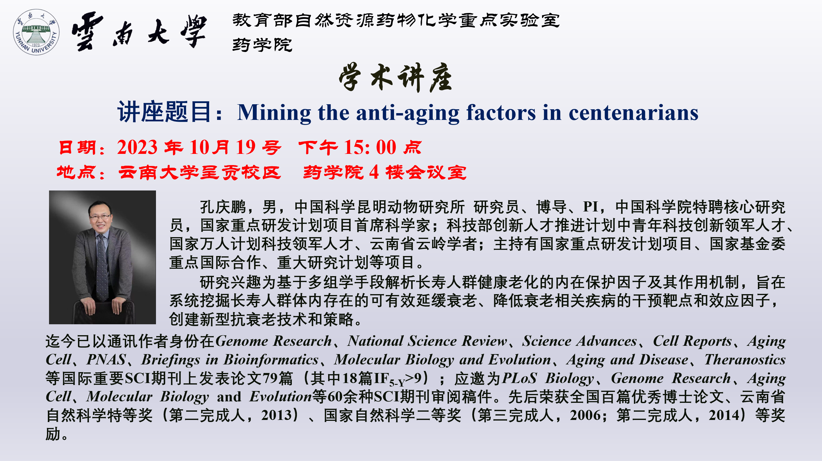 【学术报告】Mining the anti-aging factors in centenarians