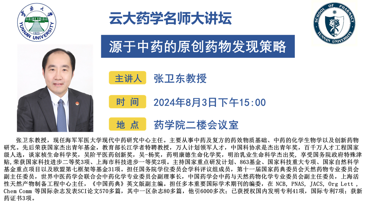 【云大药学名师大讲坛】 源于中药的原创药物发现策略
