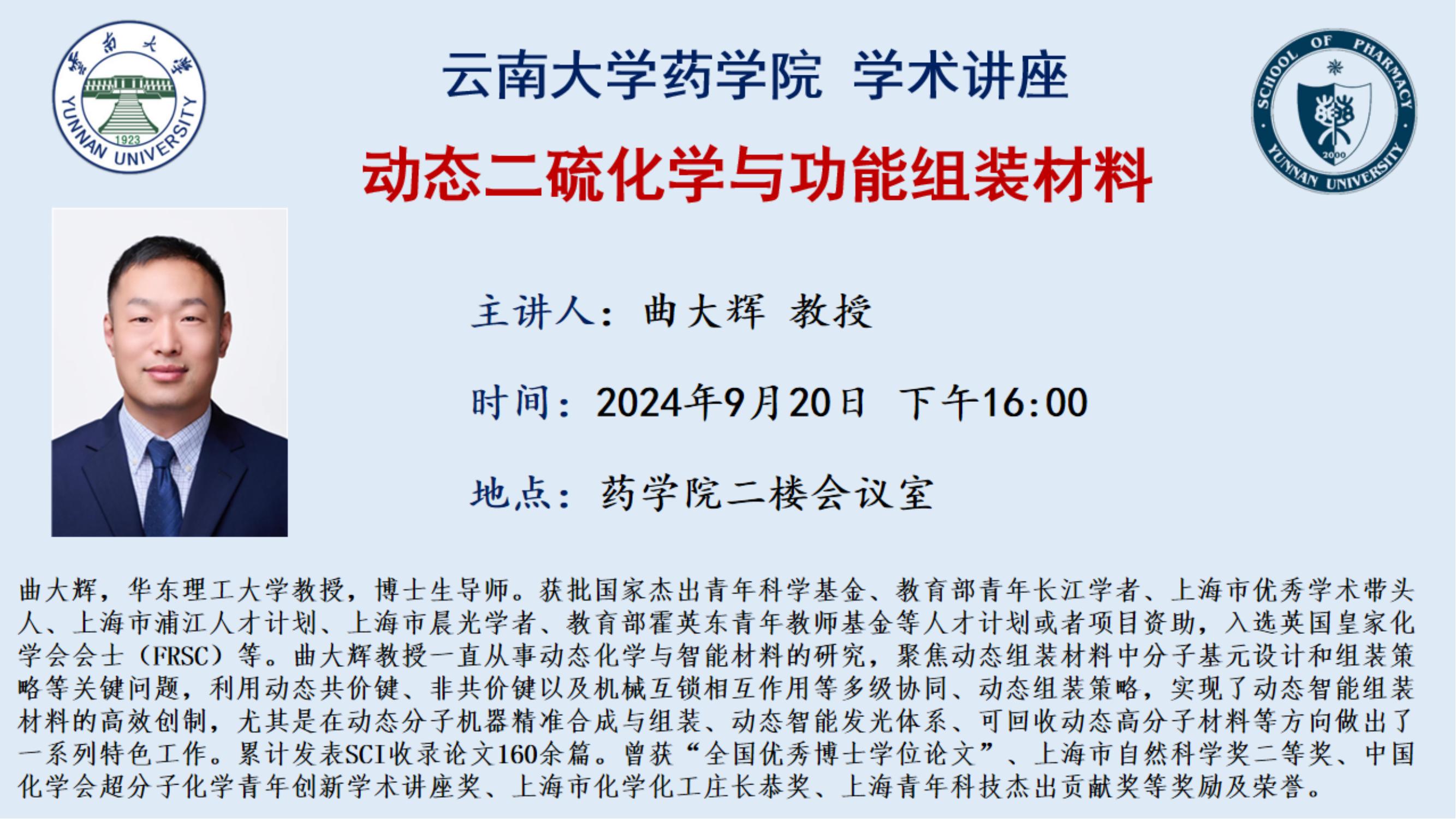 【学术报告】动态二硫化学与功能组装材料